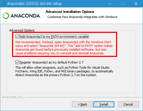 설치는 아래 URL을 따라서 진행하시면 됩니다. 다운로드 받은 exe 파일 실행시 아래그림처럼 환경변수 설정만 주의해서 체크해주시고 나머지는 그대로 따라하시면 설치가 완료됩니다.