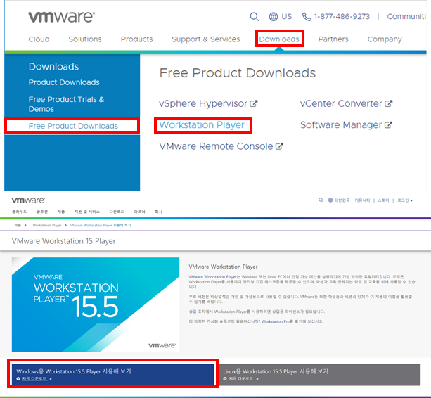 - 설치 URL : https://www.vmware.com/kr/products/workstation-player/workstation-player-evaluation.html