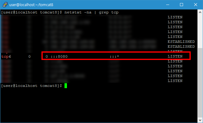 4) TCP Port LISTEN 상태 확인 (8080 Port)