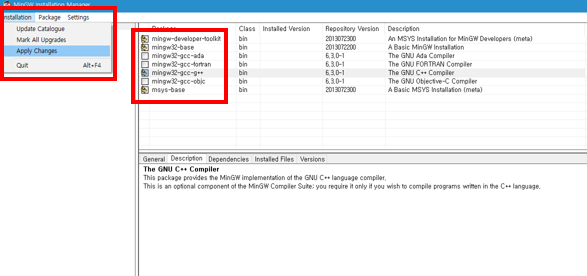 4. MinGw내 Package 설치