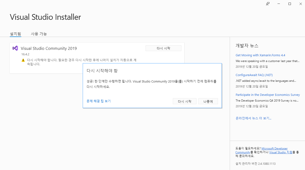 무료 다운로드를 클릭 후 설치를 시작합니다.