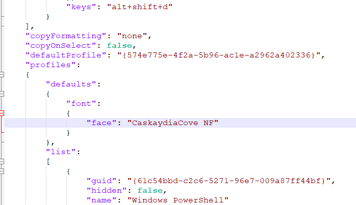 "terminal.integrated.fontFamily": "CaskaydiaCove NF”