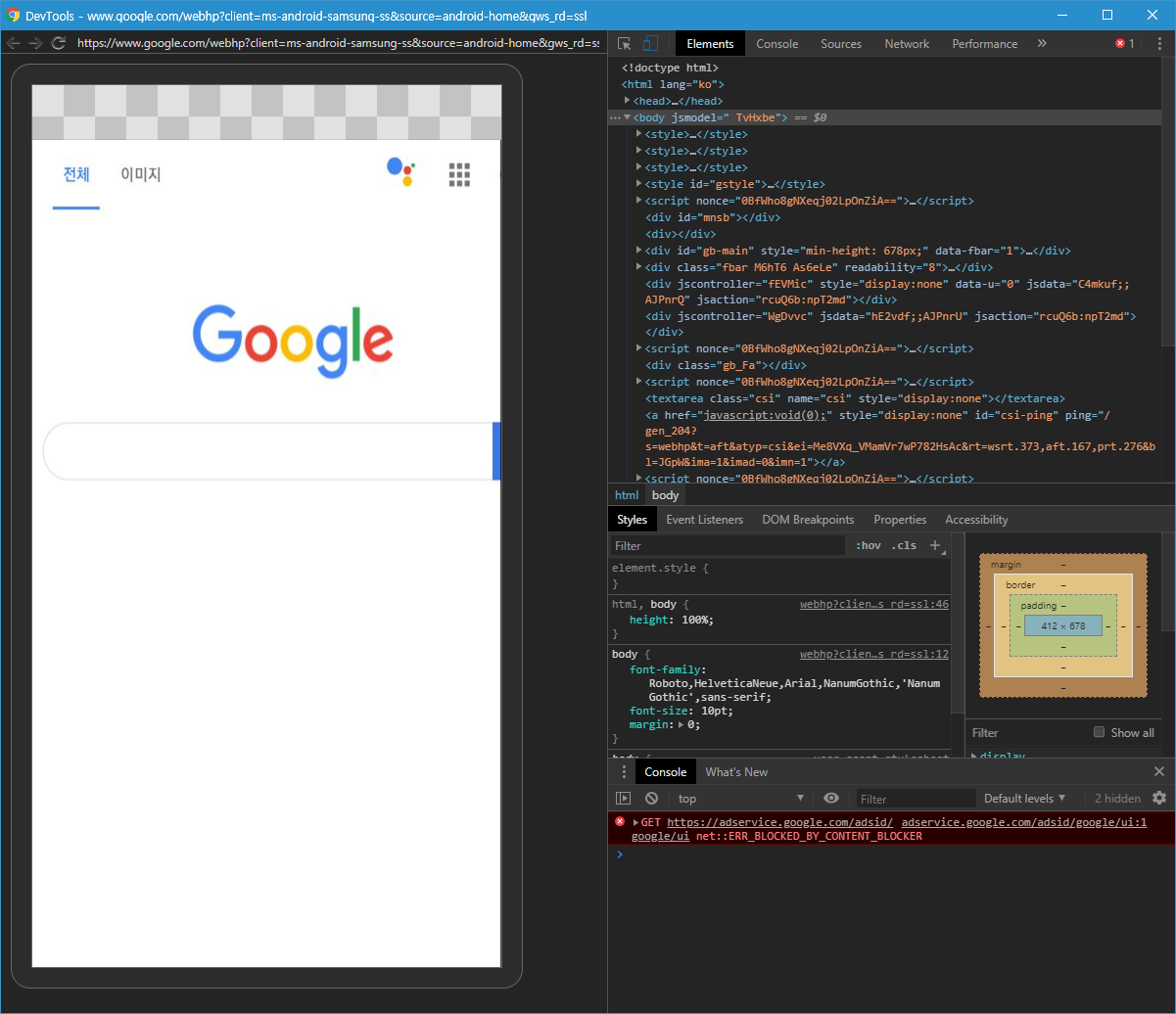 1) PC에서 모바일 개발모드를 확인하려면