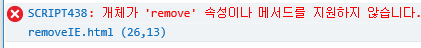 잘되던 javascript remove() 함수가 IE10에서는 사용불가한 이슈가 있었습니다.