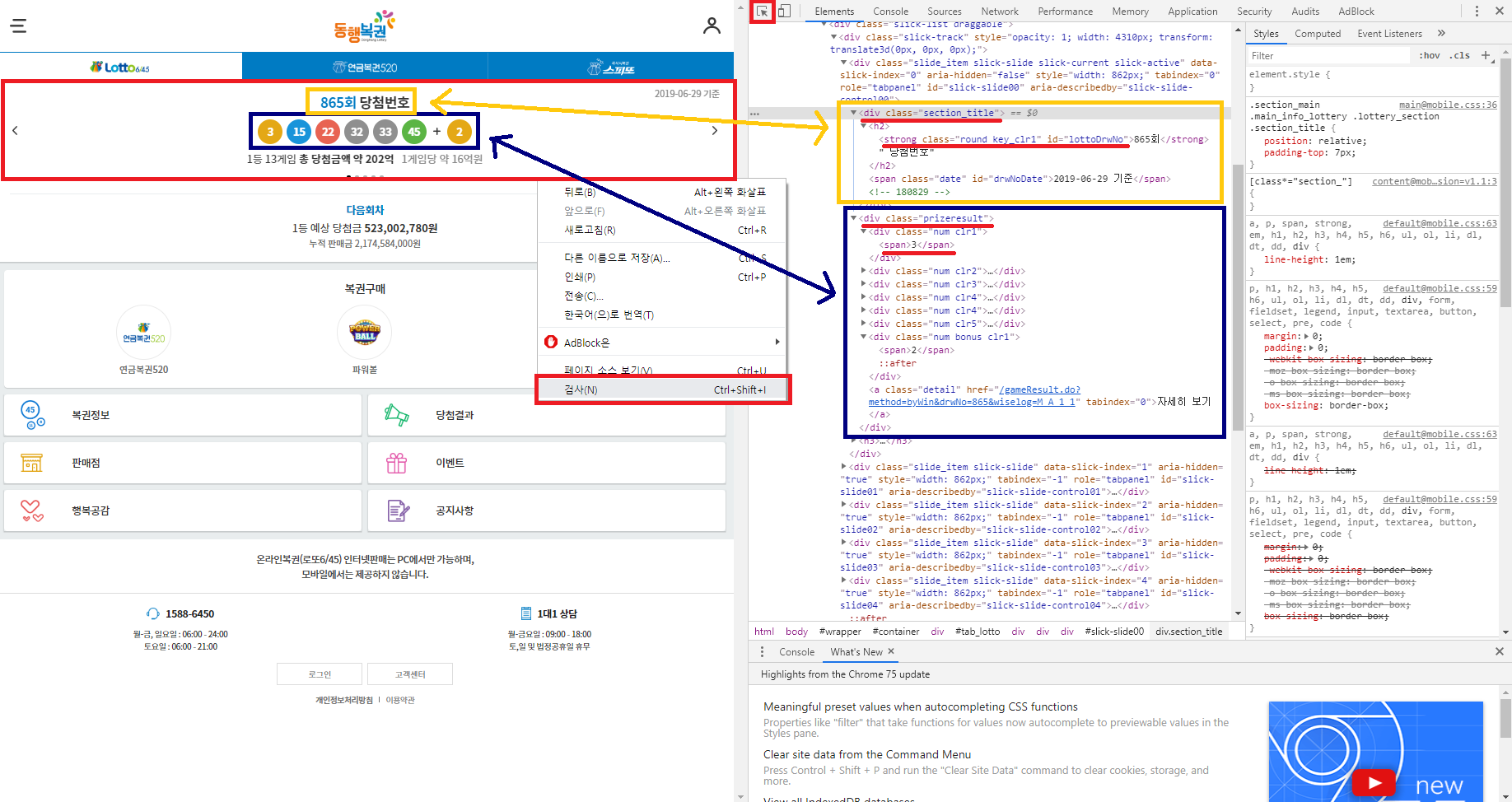 마우스 오른쪽 버튼 클릭 후 '검사'를 누르면