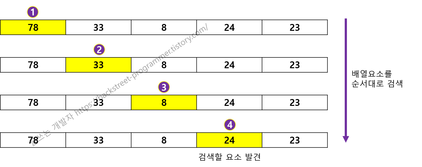 ① 검색할 값과 같은 요소를 발견한 경우 (n 회, 평균 n/2회)