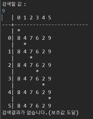 System.out.println("검색결과가 없습니다.(보초값 도달)");